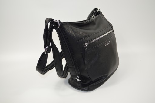 - -jedną komorę zasuwaną, a w niej kieszeń przez całość torebki, mała kieszonka zasuwana i dwie otwarte kieszonki