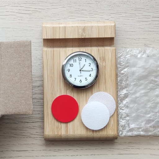 ✅ Dwustronna naklejka o średnicy 25 mm (2,5 cm) w zestawie do naklejenia zegara w dowolnym miejscu, dobrze trzyma.