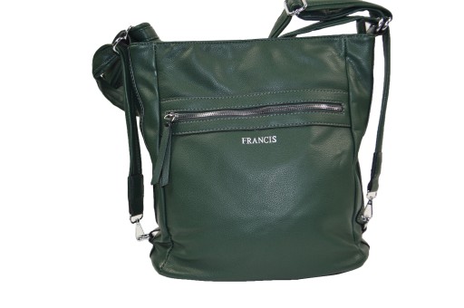 - -jedną komorę zasuwaną, a w niej kieszeń przez całość torebki, mała kieszonka zasuwana i dwie otwarte kieszonki