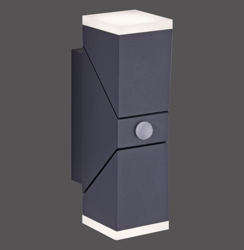 Kinkiet RYAN 9772-13 sprawdzi się na każdej elewacji, stanowiąc również jej element dekoracyjny. Do mocowania ściennego przytwierdzony został podwójny klosz, z którego światło odchodzi zarówno od dołu jak i do góry. Ponadto każdy z kloszy można obrócić, dzięki czemu model zyskuje na funkcjonalności. Rodzaj ochrony IP54 będzie chronił produkt przed strumieniem wody oraz przed kurzem i pyłem. W oprawę wbudowany został panel diod LED o temperaturze barwowej 3000K zapewniający światło o ciepłej białej barwie. Cała lampa wykonana została z metalu i jest w antracytowym kolorze. Dodatkowo model wyposażony został w czujnik ruchu.