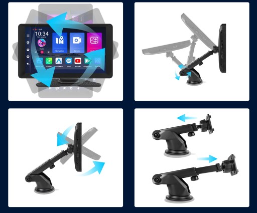 W zestawie dostajesz 9 calowy ekran do samochodu, który możesz postawić na kokpicie (przykleić za pomocą taśmy 3M lub nawet przykręcić). Ekran IPS LCD jest dotykowy z wysoką rozdzielczością (1600x600 px). Monitor ma też dobre parametry jeśli idzie o kąty widzenia (w poziomie to ok. 150 stopni), więc ten sprzęt może znaleźć swoje miejsce w większych autach typu busy, vany czy autokary. Szczególnie, że sam monitor możesz przenosić z auta do auta. Monitor ma opcję pochylenia ekranu.