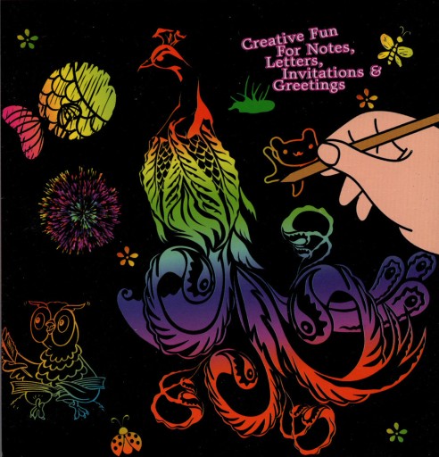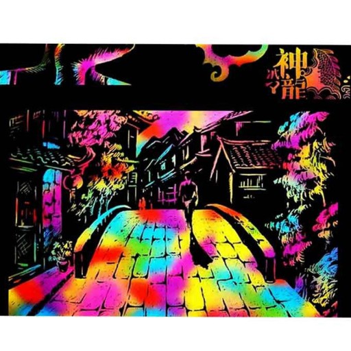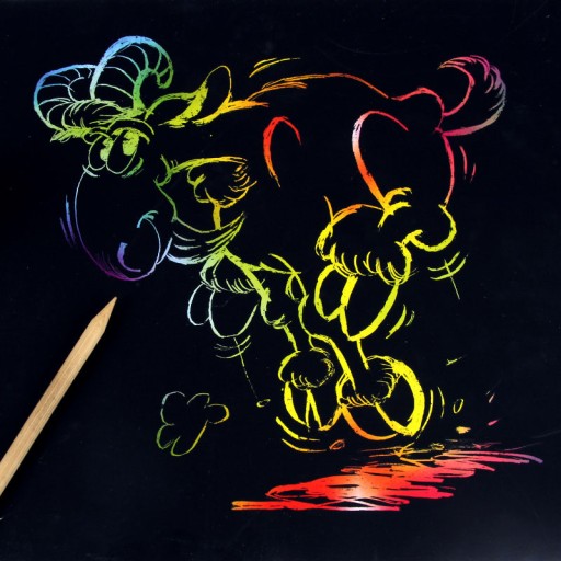Blok składa się z 10 kartek, w których pod czarną warstwą kryją się tęczowe kolory.