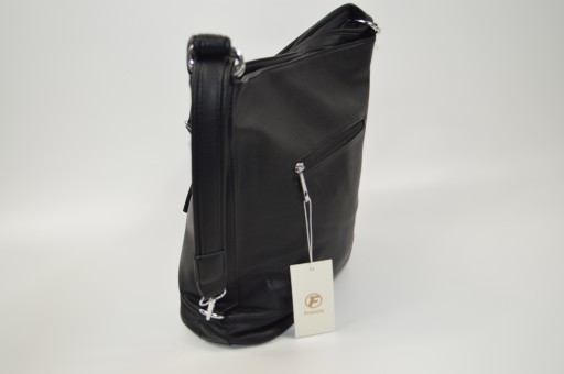 - -jedną komorę zasuwaną, a w niej kieszeń przez całość torebki, mała kieszonka zasuwana i dwie otwarte kieszonki