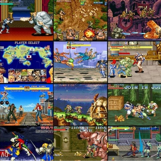 Zawiera duży wybór gier retro: Super Mario, King of Fighters, Alloy Slug, Brawl i inne.