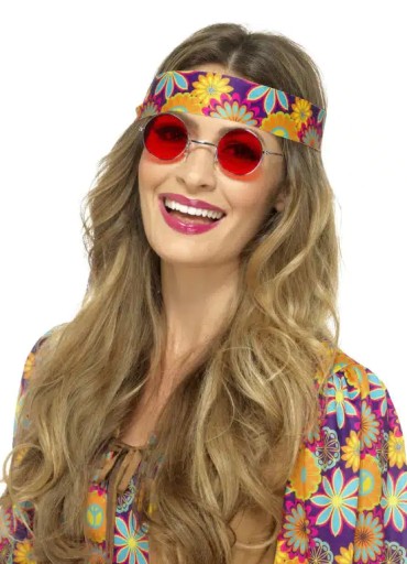 Okulary lenonki czerwone HIPPY HIPISKA FLOWER POWER KARNAWAŁ
