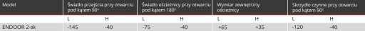 Drzwi przeciwpożarowe dwuskrzydłowe ENDOOR są produkowane w dwóch wersjach: jako rewersyjne (wymiary standardowe) lub jako kierunkowe (wymiary specjalne). W przypadku tych drugich należy określić kierunek otwierania w chwili składania zamówienia. Standardowe wykonanie obejmuje:
