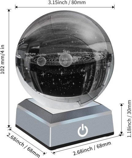 - Średnica kryształowej kuli układu słonecznego: 80 mm