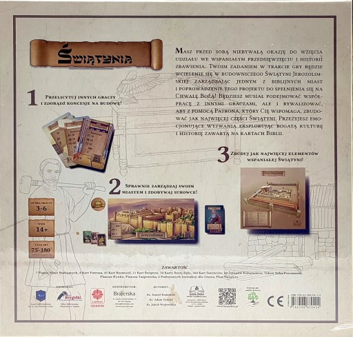 Gra planszowa Świątynia została przemyślana, profesjonalnie przygotowana i zrealizowana ze szczególną dbałością o detale, aby dobrą zabawę przy niej mógł znaleźć każdy: starsi i młodsi, rodzice wraz z dziećmi, większe i mniejsze grupy znajomych. Przeznaczona zarówno dla tych, którzy fascynują się religią, kulturą i historią jak i tych, którzy wolą strategię i działania ekonomiczne, bez tych ostatnich w grze się nie obędzie!