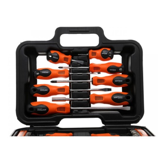 Zestaw śrubokrętów i bitów KD10903 marki Kraft&Dele sprawdzi się w każdym garażu czy warsztacie. Dołączona w zestawie walizka ułatwia przechowywanie śrubokrętów.