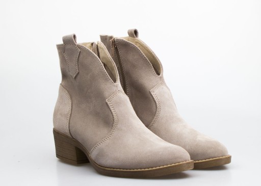 BEŻOWE MODNE BOTKI KOWBOJKI ZAMSZOWE OPTIMO SKÓRZANE NIEOCIEPLANE