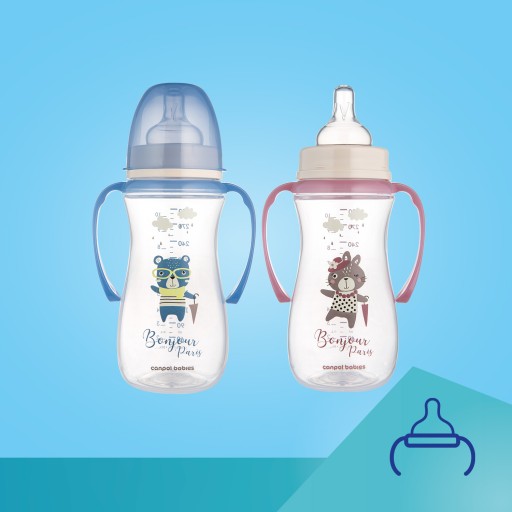 Canpol babies Butelka antykolkowa z uchwytami 300 ml PP EasyStart BONJOUR PARIS niebieska