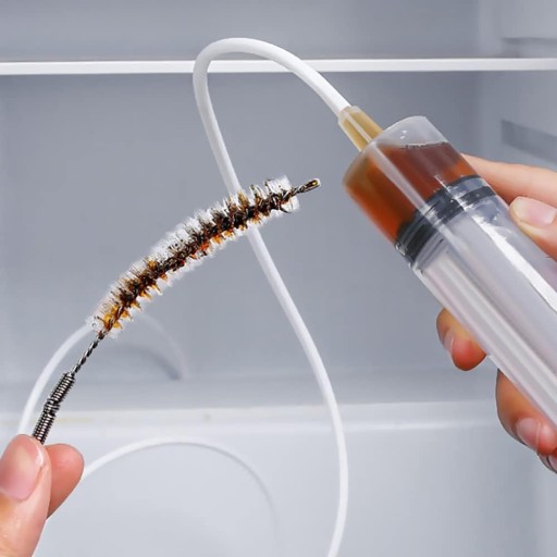 Dzięki dołączonej strzykawce na łatwiejsze wtryskiwanie wody i długiej (1 m) giętkiej szczotce na łatwy i bezpieczny sposób usuwasz całą brud i zatknięcie rur. Do usuwania lodu dołączona jest wygodna łopatka, dzięki której można bezpiecznie (bez użycia ostrych przedmiotów) usunąć zbity lód. Do zestawu dołączony jest korek odpływu, który należy użyć, aby zapobiec ponownemu zatkaniu odpływu.