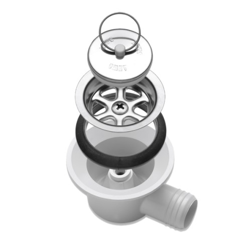 Odpływ zlewu kątowy 20 mm. Wykonany z PCV oraz ze stali nierdzewnej w zestawie z uszczelką oraz korkiem.
