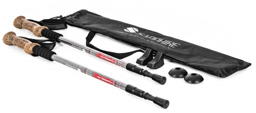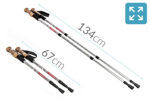 Dodatkowymi zaletami oferowanego sprzętu są: zamontowany wewnątrz kija system antywstrząsowy Antishock, profilowana, ergonomiczna rączka oraz dodatkowe wyposażenie w postaci uniwersalnych końcówek, talerzy do miękkiego podłoża, bucików oraz pokrowca. Kije składają się z regulowanych segmentów, dzięki czemu z łatwością można je transportować i dostosować do wzrostu użytkownika.