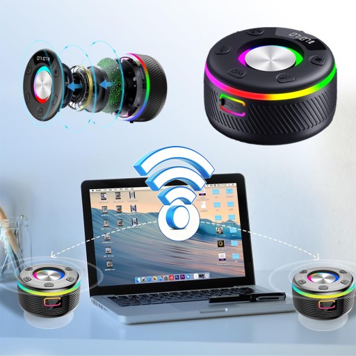 ♬ Wyposażony w ulepszony inteligentny chip Bluetooth 5.3, który nie tylko łączy się bardziej niezawodnie i szybciej, ale także posiada funkcję automatycznego zapisywania, która automatycznie łączy się z ostatnio używanym urządzeniem. Głośnik można łatwo sparować z większością urządzeń obsługujących technologię Bluetooth, takich jak smartfony, tablety, odtwarzacze MP3, telewizory, laptopy. W trybie FM możesz także słuchać radia.