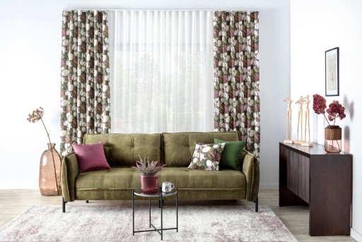 Kolor: beżowo-zielony motyw kwiatowy