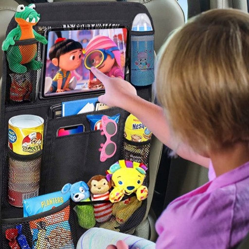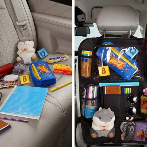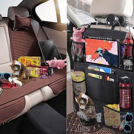 ✅【Wysoka pojemność】Organizer na tylne siedzenie samochodu o powiększonych wymiarach 62 * 42 cm; Powierzchnia przezroczystego okna sięga 27 * 20 cm, co ułatwia umieszczenie w nim iPada lub tabletu. W ten sposób osoby siedzące na tylnym siedzeniu mogą cieszyć się szczęśliwym czasem podczas jazdy dzięki tabletowi; ochraniacz oparcia ma 10 schowków, które zapewniają więcej miejsca do przechowywania napojów, zabawek dla dzieci, książek i czasopism, aby podróż była łatwiejsza i przyjemniejsza