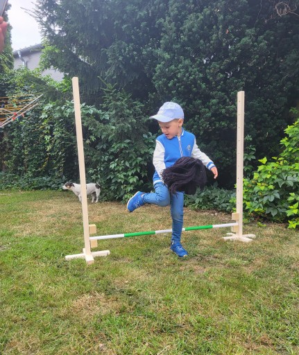 Produkt jest trwały i bezpieczny, wykonany z idealnie szlifowanego drewna sosnowego, po to by Dziecko nie zrobiło sobie krzywdy podczas przeskoków czy przenoszenia stojaka . Drążki są drewniane, lekkie, dostępne w kilku wersjach kolorystycznych.