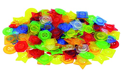 Zestaw półprzezroczystych guzików składa się z elementów o różnych kształtach, w 6 różnych kolorach. Guziki mają jedną, trzy lub pięć otworów. Doskolane sprawdza się do pracy z panelem świetlnym. Może być z powodzeniem stosowany do nauki sortowania i liczenia.