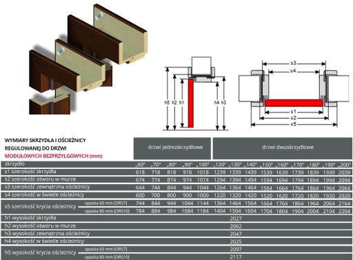 3. Ościeżnica regulowana do skrzydeł modułowych bezprzylgowych z opaską płaską 60 mm ORS7 lub 80 mm ORS10