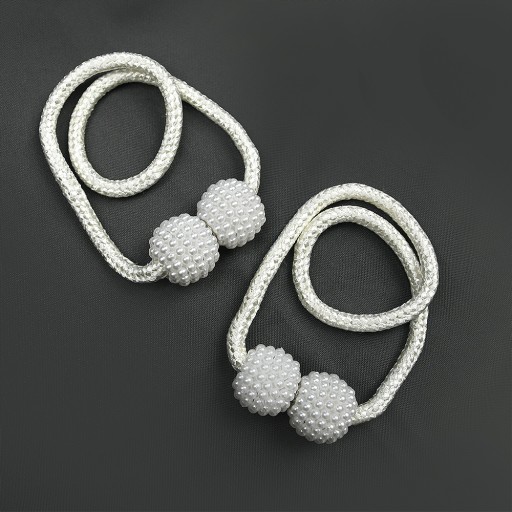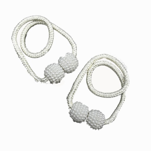 Eleganckie upięcie do firan,zasłon w kolorze białym.Spinki wykonane są z sznurka posiadające magnes, stanowią doskonały i praktyczny element dekoracyjny okien.Kulki natomiast wykończone są perełkami. Pięknie zaprezentują się w tradycyjnych oraz nowoczesnych wnętrzach