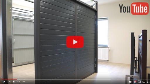 Skrzydło wypełnione jest panelem bramowym o grubości 40 mm. Brama otwierana jest wyłącznie na zewnątrz pomieszczenia.
