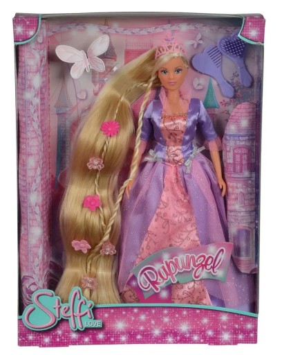 Steffi, zgodnie z bajką o Roszpunce zamkniętej w wieży i uwolnionej przez księcia, ma bardzo długie blond włosy. Wielką frajdą dla dziewczynki będzie czesanie i ozdabianie włosów lalki przy pomocy dołączonych gadżetów.