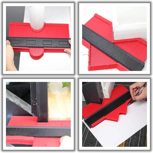 Z łatwością wytniesz półkola pod rurę czy odrysujesz kształt framugi. Wzornik ma szerokość aż 275mm, dzięki czemu można go używać w miejscach gdzie znajduje się kilka elementów i odwzorować je za jednym razem.