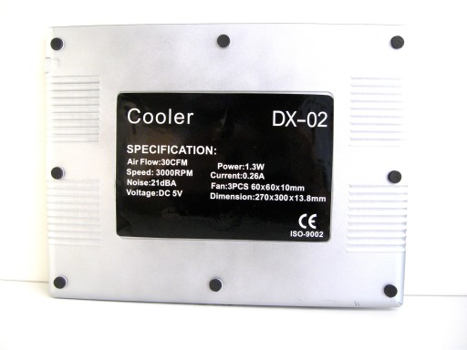 - Posiada ona trzy wolnoobrotowe wentylatory które chłodzą notebooka. Wentylatory te są napędzane energią płynącą z portu USB. Nie wymaga zasilania sieciowego ani jakichkolwiek baterii.