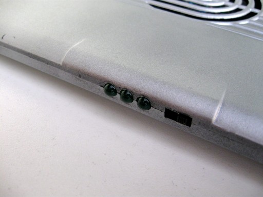 - Podkładka posiada 3 diody sygnalizujące pracę 3 wiatraków oraz wygodny włącznik wiatraków dzięki któremu sam decydujesz kiedy mają pracować