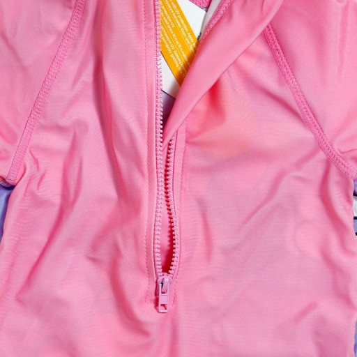 - Kombinezon kąpielowy o bardzo ładnym fasonie, w żywej kolorystyce z dużą grafiką z postaciami z ulubionych bajek. Kombinezon wykonany z dobrych jakościowo materiałów, naddaje się i naciąga dzięki czemu jest komfortowy w noszeniu, dodatkowo chroniąc przed szkodliwym promieniowaniem UV.