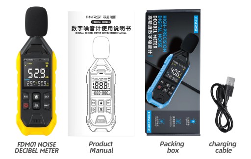 Измеритель уровня шума Fnirsi FDM01, объем 30–130 дБ, сонометр, 600 мАч