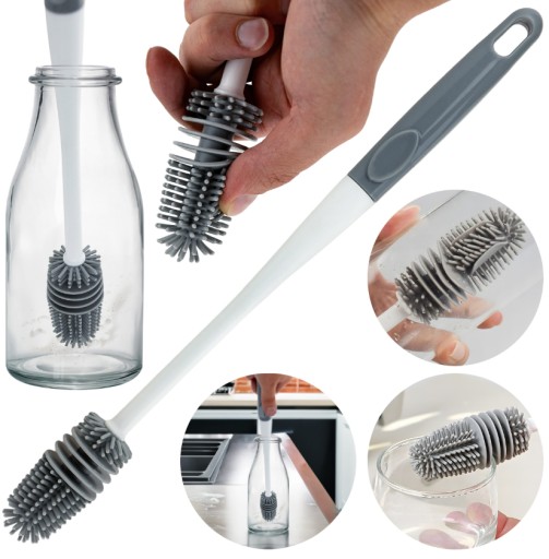 ✅ Wygoda i higiena: Długa rączka umożliwia czyszczenie butelek bezpośrednio z dystansu, co zapewnia komfort użytkowania i minimalizuje kontakt z wodą oraz detergentami, co jest szczególnie istotne dla higieny.