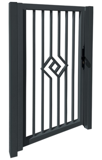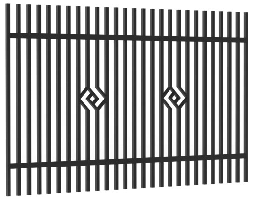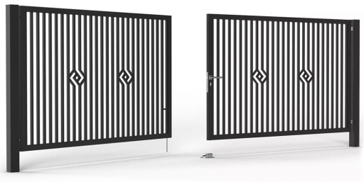 SKYROCKET BR.26.1.2 - Brama przesuwna, z delikatnym zdobieniem, wykonana na szynie jezdnej 80x80 mm. Obramowanie oraz przeciwwaga bramy wykonane z profili 60x40 mm. Wypełnienie to profil 25x25 mm. Słupy montażowe w komplecie. Brama wyposażona w zamek, wkładkę, kluczyk, uchwyt, słupy, wózki jezdne, blokadę na szynie jezdnej, najazd na słupek lub wyłapywacz boczny bramy.