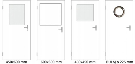 W drzwiach stalowych jesteśmy w stanie wykonać przeszklenia w 4 różnych wymiarach.