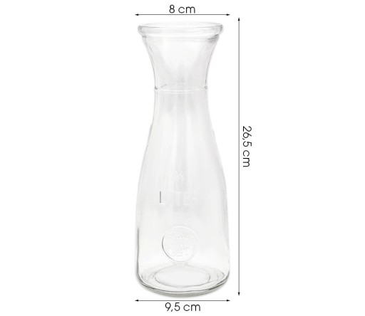 Karafka na wodę, wino, sok, herbatę i inne napoje została wykonana z wysokiej jakości szkła. Jest całkowicie bezpieczna dla zdrowia i dopuszczona do kontaktu z żywnością. Korzystanie z niej jest bezpieczne i wygodne - karafka ma solidnie, stabilne dno i dobrą przejrzystość. Idealnie nadaje się do serwowania soków, drinków i wody. Jej klasyczny kształt będzie stanowił ozdobę każdego stołu i domu.