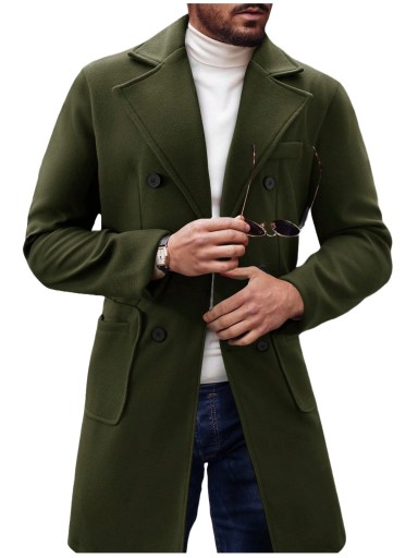 To klasyczny męskie płaszcz zapinany na guziki.