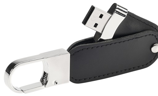 Skórzany model z obrotową pamięcią USB. Dodatkowy uchwyt umożliwia podpięcie do kluczy lub torby. Dostępne 3 kolory skóry.