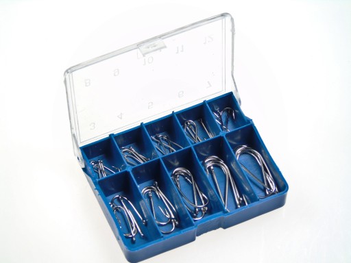 ZESTAW HACZYKÓW Z OCZKIEM150szt ORGANIZER+WIĄZARKA
