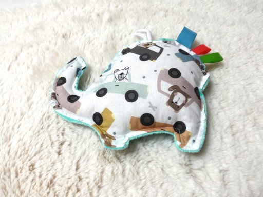 ✅ Słonik posiada pętelkę za którą można go powiesić w wózeczku lub przy łóżeczku oraz kolorowe ozdobne metki wstążeczki.
