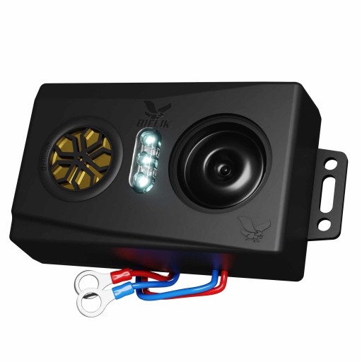 - Wbudowany czujnik, który po wykryciu ruchu pod maską samochodu uruchamia serię jasnych, agresywnych błysków.
