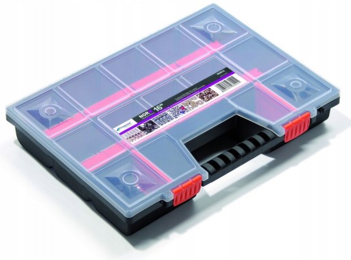 Organizer NOR16 to plastikowe pudełko z przegródkami. Posiada przezroczystą pokrywę, która umożliwia szybkie odszukanie potrzebnych elementów. Idealne rozwiązanie na uporządkowanie i przechowywanie różnych drobnych przedmiotów. Bardzo pomocny w pracy instalatorów, mechaników, ale również dla majsterkowiczów, wędkarzy oraz Pań Domu.
