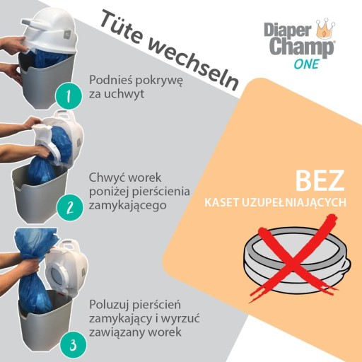 Kosz na pieluchy DiaperChamp to niezbędny element na liście malucha! DiaperChamp to kosz, który nie uwalnia woni zużytych pieluch, w którym z łatwością możesz przechowywać zużyte pieluszki. Nie potrzebujesz drogich kaset ani wkładów uzupełniających, możesz użyć dowolnej torby i worka! Oszczędności są ogromne w porównaniu z innymi koszami na pieluchy, w których potrzebne są drogie kasety lub wkłady. Korzyści dla środowiska są również przekonujące. W koszach na pieluchy DiaperChamp można stosować tworzywa sztuczne ECO, a nawet torby materiałowe.
