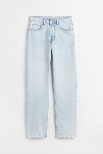Dżinsy z 5 kieszeniami wykonane z grubego bawełnianego denimu, który na początku użytkowania wydaje się sztywny, ale mięknie i rozluźnia się z upływem czasu. Proste nogawki o normalnym fasonie od talii do bioder i luźniejszym od ud do samego dołu. Wysoki stan, rozporek na suwak i guzik. Dłuższe nogawki zaprojektowane tak, aby delikatnie opadały na stopy. Klasyczny styl pasujący do wszystkiego, do bluzy z kapturem i do marynarki.