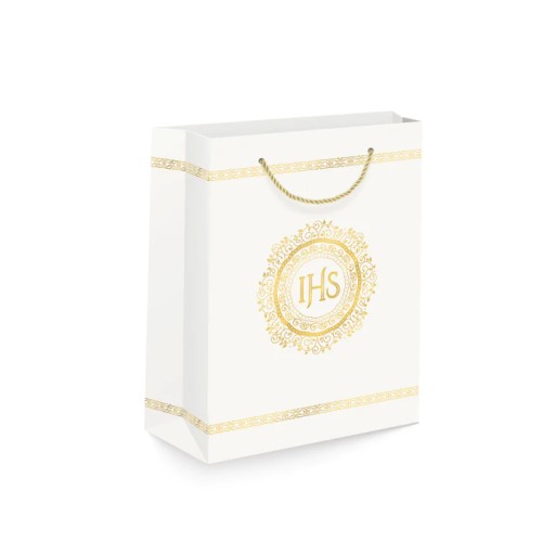 Torebka na prezenty IHS biało-złote duże mix wzorów - 1 sztuka