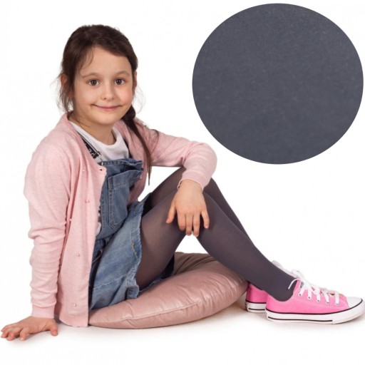 Rajstopy dziewczęce w jednolitym kolorze grafitowym, to podstawowy element w szafie młodej damy. Grubość splotu włókien mikrofibry wynosi 40 DEN. Dodatek włókien elastycznych sprawia, że materiał nie ściąga się i nie marszczy.