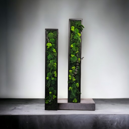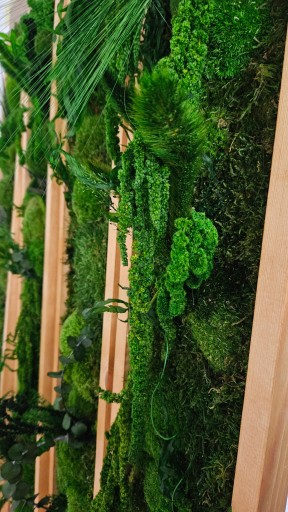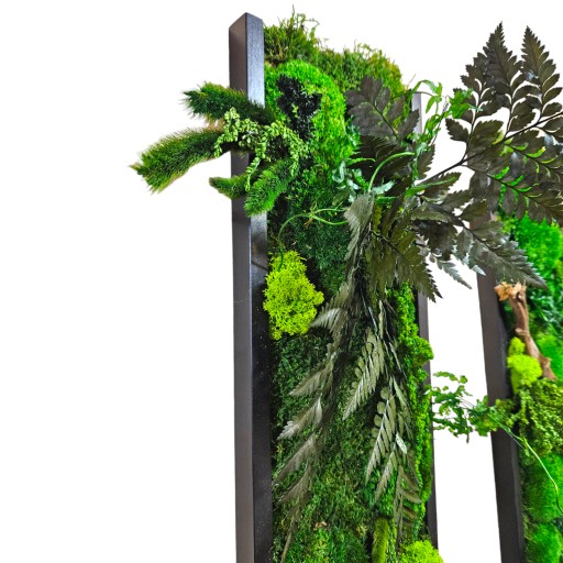 Obrazy w całości wykonane są w 100% z naturalnych roślin, tj. mchów i roślin tropikalnych. Rośliny są stabilizowane, co oznacza, że nie potrzebują specjalnych warunków do życia.