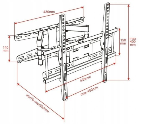 - Maksymalny rozmiar mocowania do TV/Monitora: 400x400mm