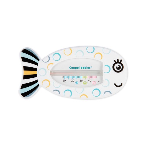 Termometr do kąpieli w kształcie rybki. Pozwoli dokładnie zmierzyć temperaturę wody, a ciekawy kształt będzie atrakcją podczas kąpieli maluszka. Prawidłowa temperatura wody powinna wynosić 37 stopni Celsjusza i jest oznaczona na skali wizerunkiem dziecka.