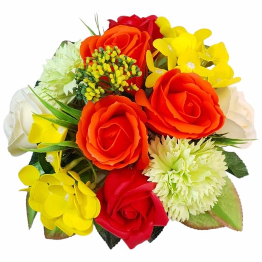 Bukiet z różami i innymi kwiatami mydlanymi to idealny prezent dla bliskiej osoby lub piękna ozdoba dla Twojego domu lub biura.